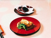 盛り付けに使用されている、らふてーに添えられている野菜、レモンは、商品に含まれません。